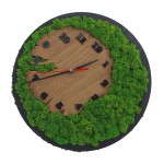 Ceas rotund de perete, decorat cu licheni naturali stabilizati.